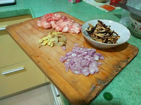 食材 :在來米粉一包 600g白蘿蔔一根 1.2kg香菇 三朵蝦米 一兩臘腸及肝腸各一